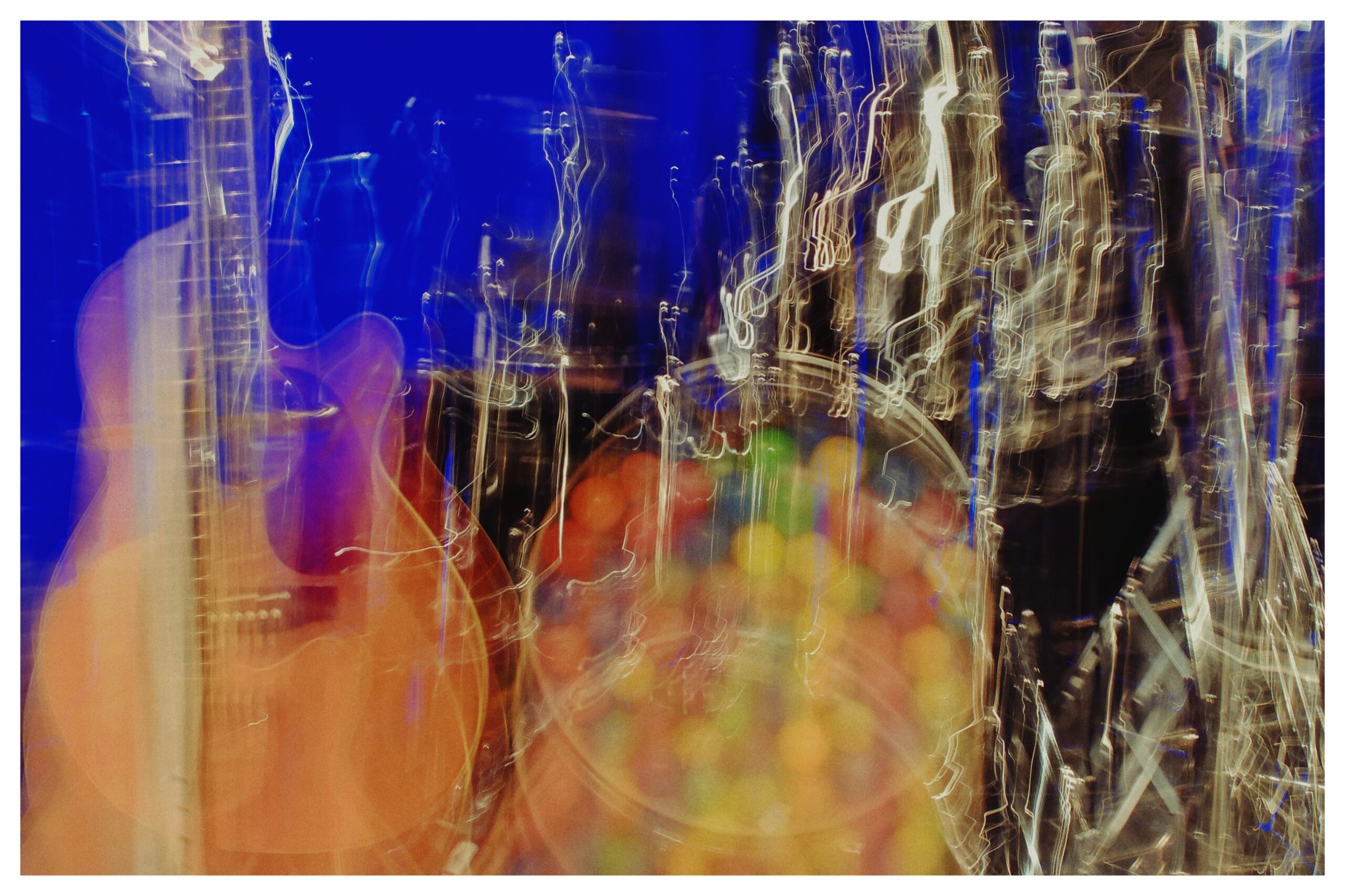 Heute ist mal wieder ein Konzerttag. Musicomedy steht auf dem Programm. Und so ist dieses Bild zwischen Soundcheck und Konzert entstanden. Die Bassdrum des Stehschlagzeugs ist mit bunten Bällen gefüllt und die akustische Gitarre parkt direkt davor.