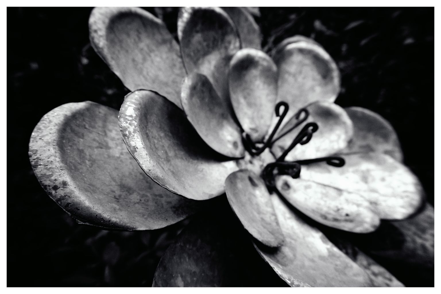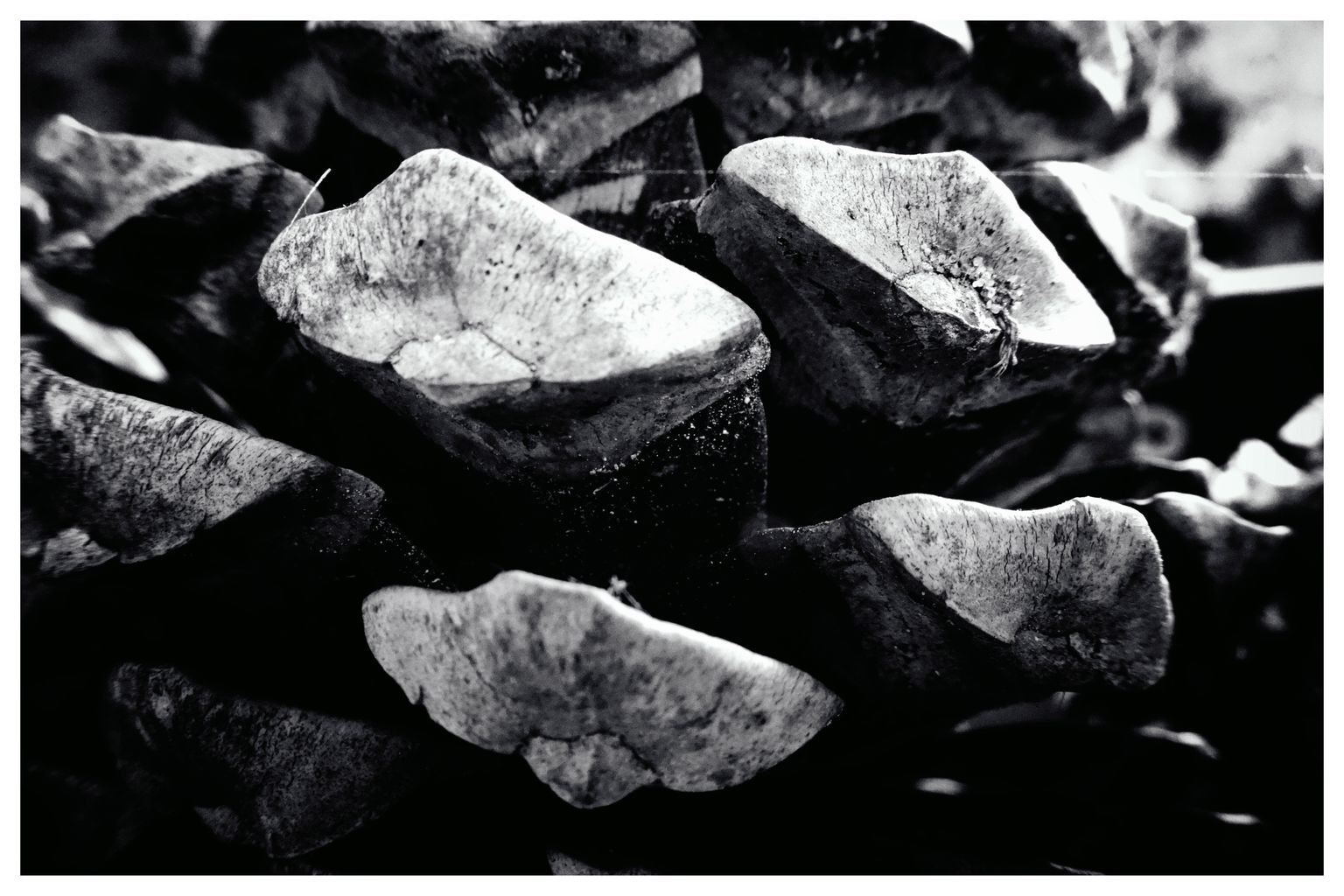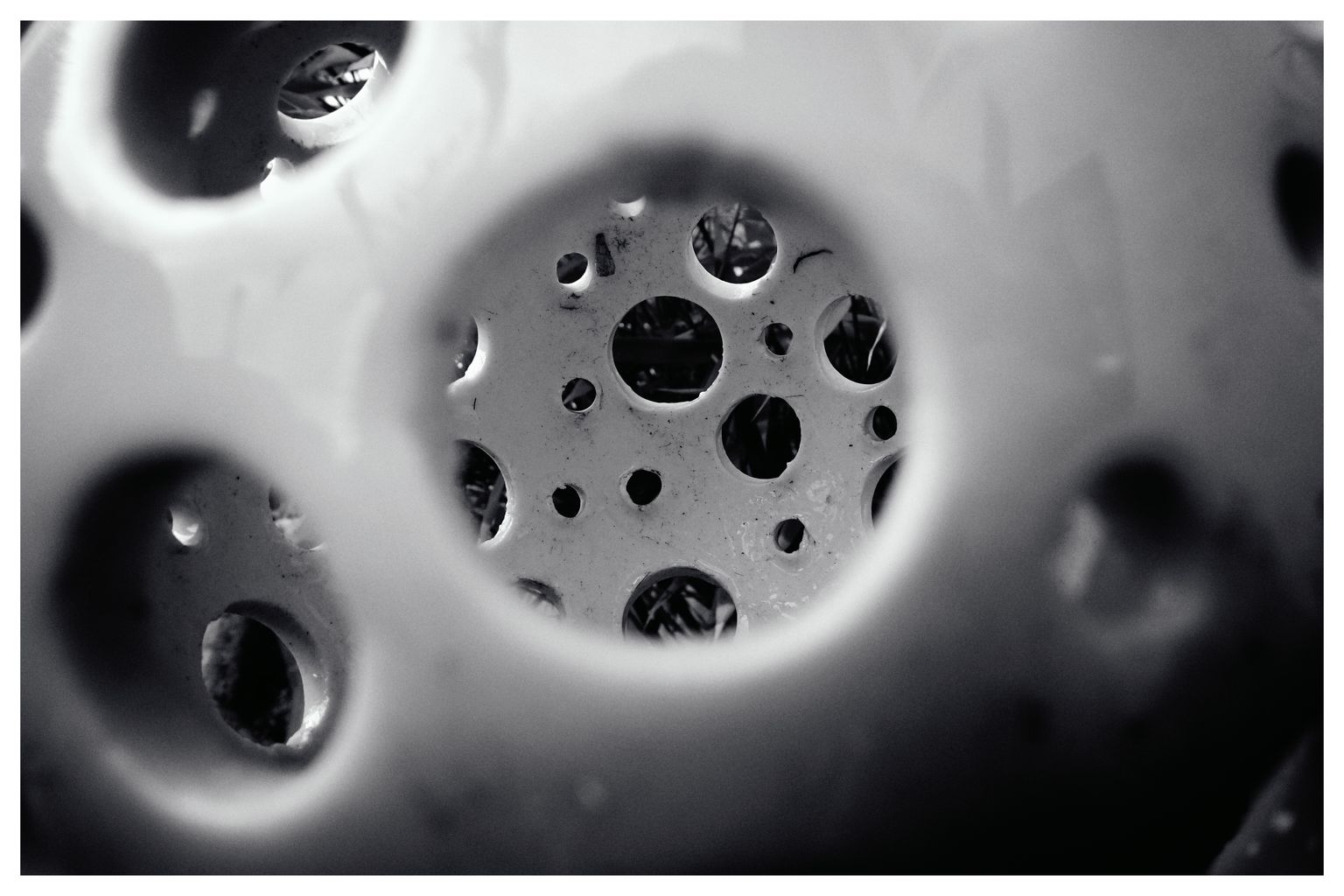 Und weil schon alles anders war als sonst ging es auch genauso anders weiter – per WLAN die JPGs aufs iPad übertragen, in Snapseed importiert, einen Look aus einer starken Vignette, kontrastreicher SW-Konvertierung, einem Filmlook mit Körnung und Rahmen erstellt. Binnen 10 Minuten waren die Bilder sortiert, bearbeitet und exportiert, bereit für den Blog. Einfache Alltagsgegenstände und -situationen für sich alleine ins Bild gesetzt.