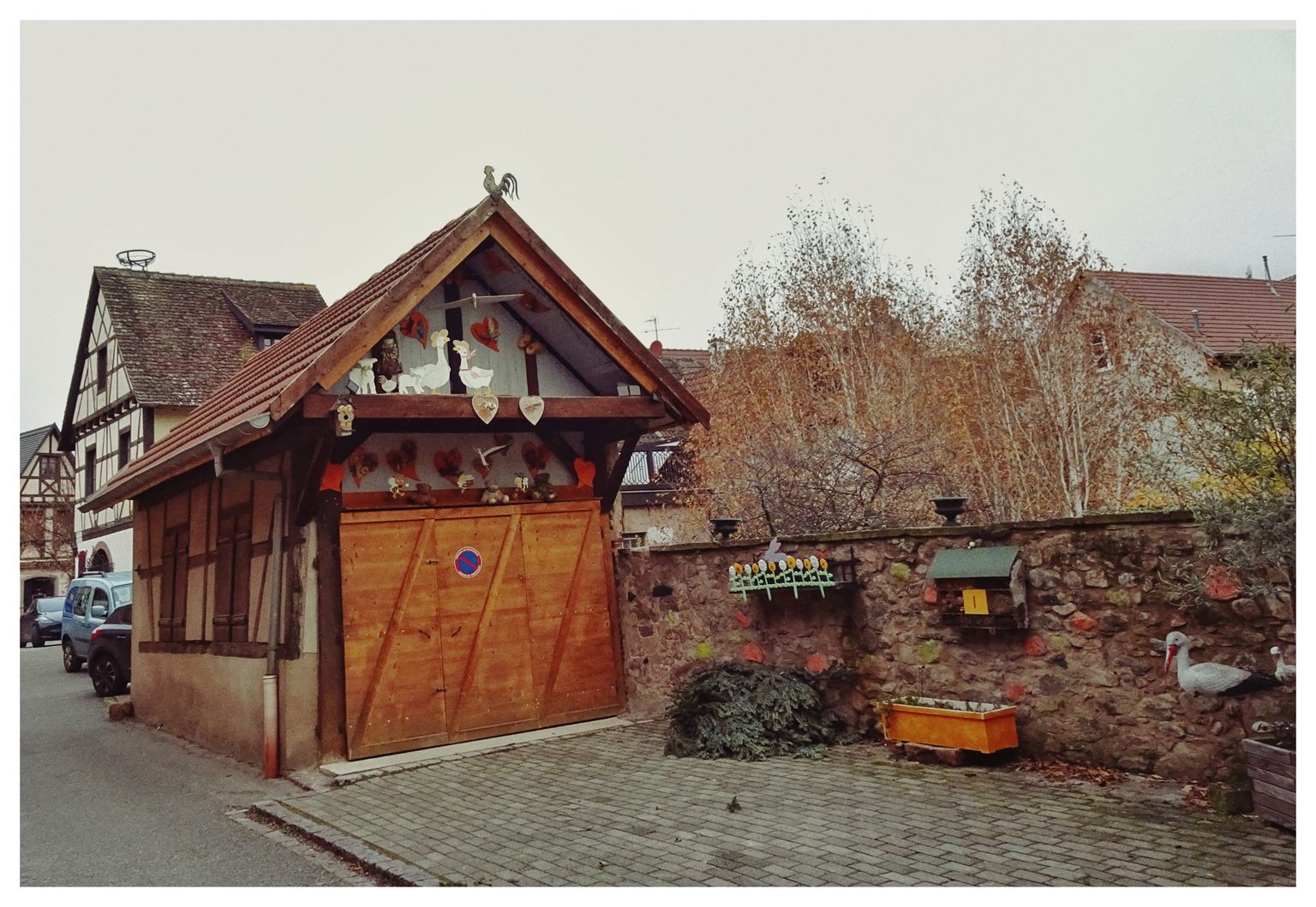 Trotz Nebels und doch eher widrigen Bedingungen hatte ich mir meine Pentax mit dem Standardzoom 17-70/2,8 geschnappt und bin durch die Gassen und Strassen von Andlau gezogen. Etwa 6km kreuz und quer durchs Städtle, und danach froh wieder im warmen Womo zu sitzen und n heißen Tee zu trinken.