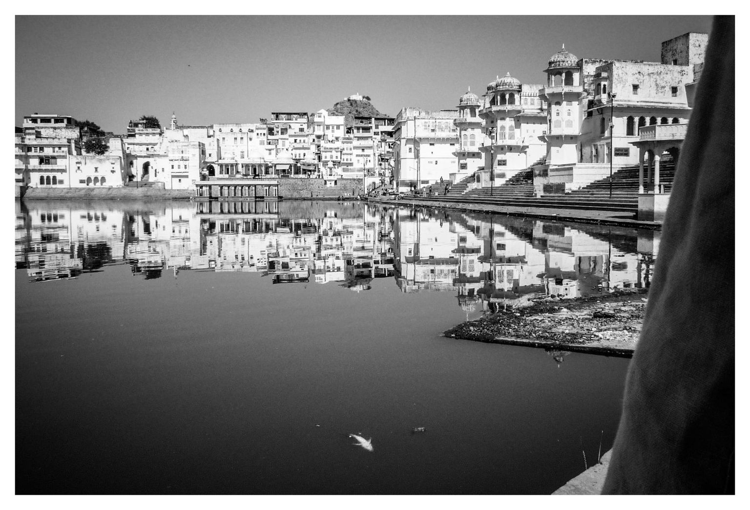 Von Jaipur aus ging es dann am nächsten Morgen in alles Herrgottsfrüh weiter nach Pushkar. Die Kleinstadt am gleichnamigen See ist eigentlich bekannt für seinen Kamelmarkt, wo für Händler und Besucher rund um den Ort ganze Zeltstädte errichtet werden. Der war allerdings bereits im November, als dafür kamen wir glatte 3 Monate zu spät. Nichtsdestotrotz bietet der See mit seiner im Wasser spiegelnden Stadtsiluette einen herrlichen Anblick, und auch die Tempel – einer davon ist Brahma gewidmet – sind einfach sehenswert.