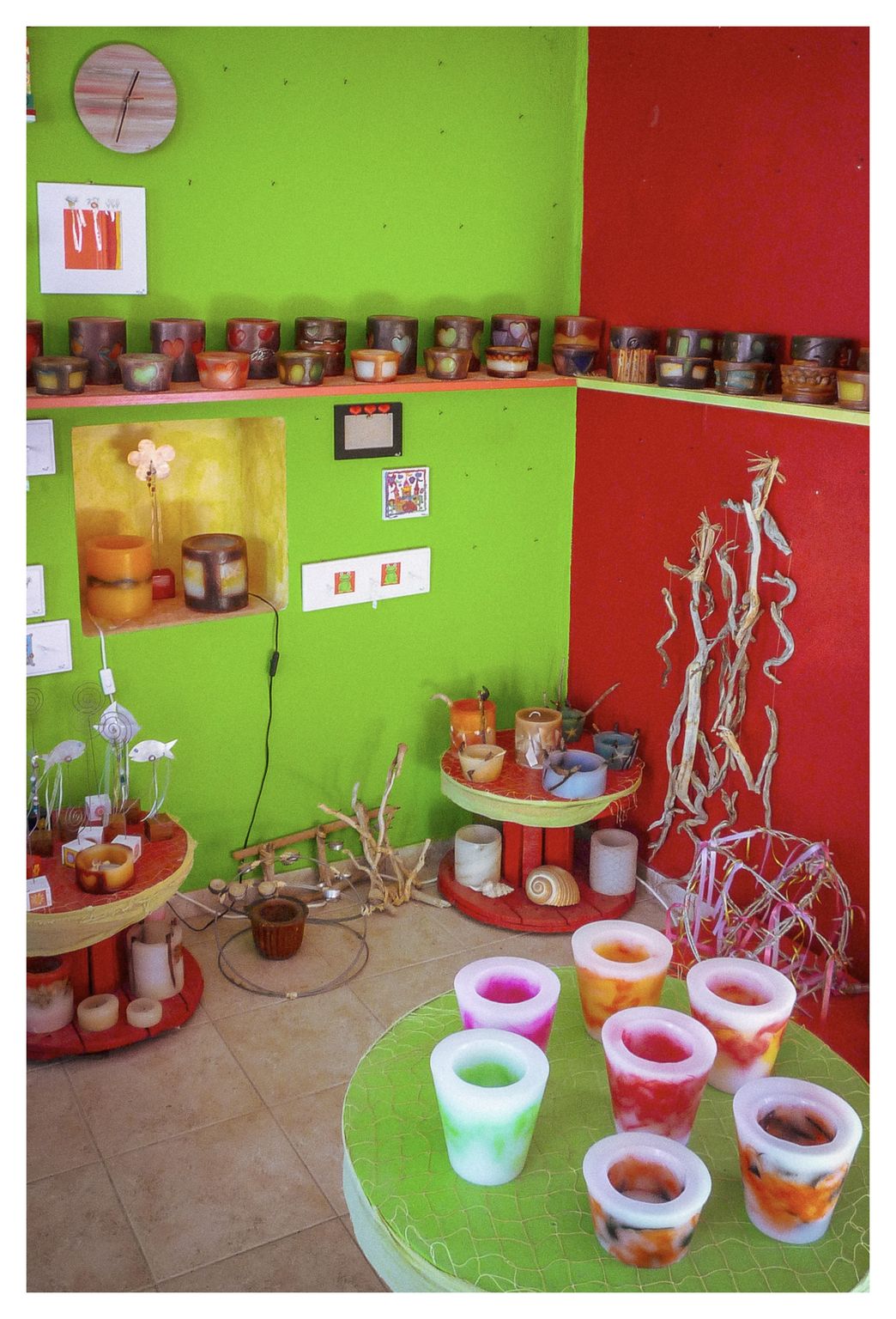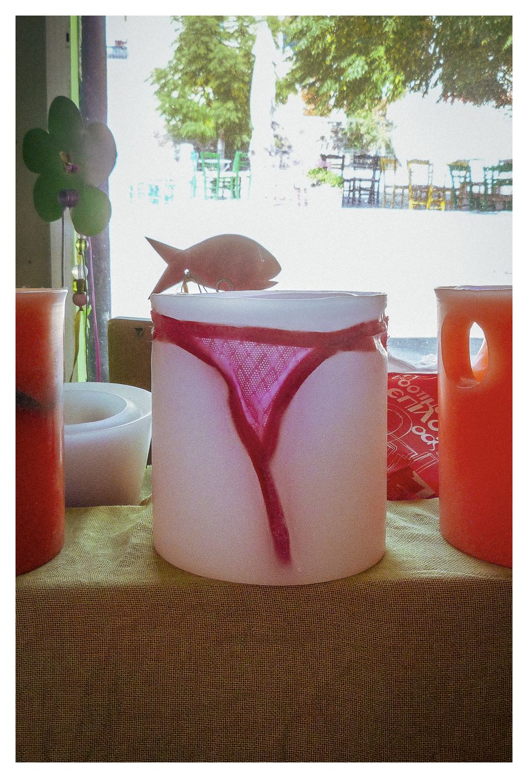 Im Ergastiri-Shop auf der Kykladeninsel Milos, fertigt Stavros wunderbare Sachen aus Wachs und anderen Materialien. Hier eine sexy Wachslampe – innen hohl, so dass ein Teelicht oder eine LED-Lampe reinpasst.